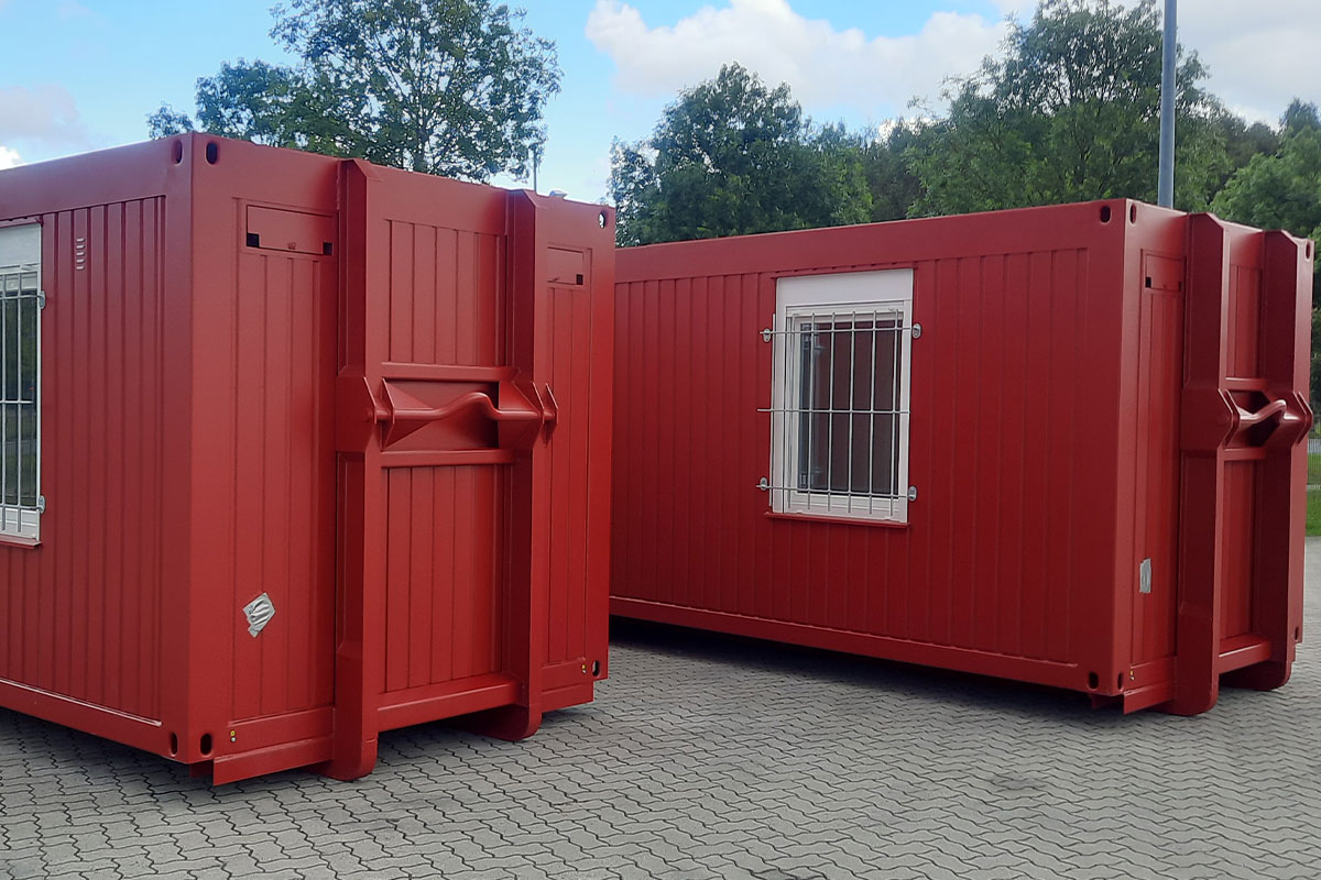 Die Container wurden auf Kundenwunsch in der Farbe rot lackiert und werden nun als Bauleitungs– und Aufenthaltsraum genutzt.