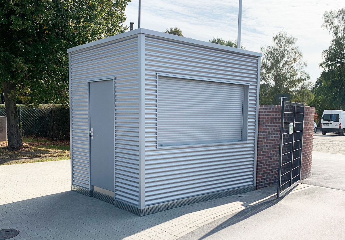 Für den Sportplatz einer niedersächsischen Stadt durften wir ein Kassenhäuschen für die Einlasskontrolle liefern.