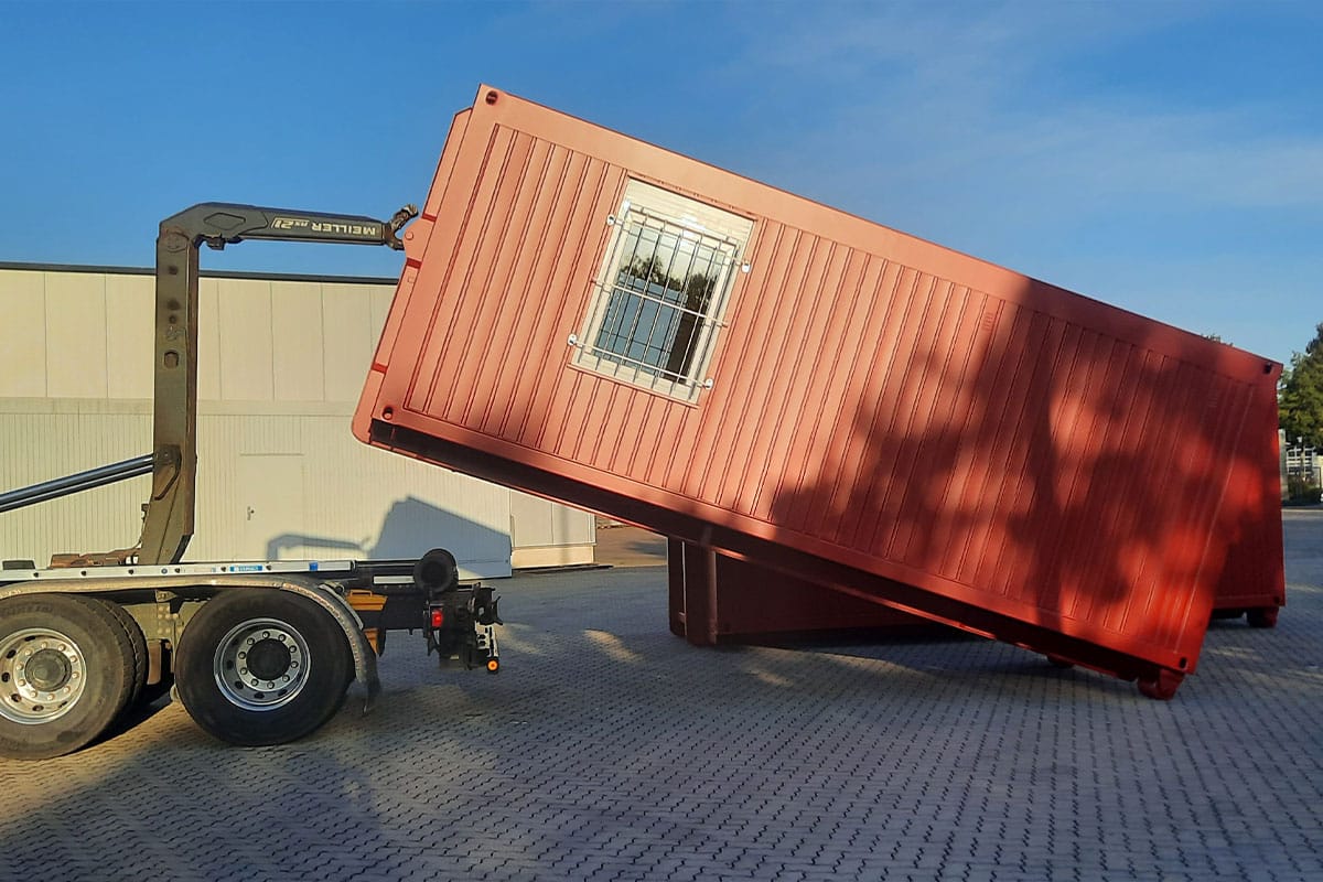 Ob als temporärer Aufenthaltsraum, Bürocontainer, Werkstatt oder Umkleide: Unsere Abrollcontainer werden kundenindividuell geplant und hochwertig umgesetzt.